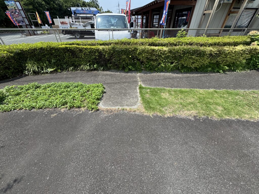 クリニックの駐車場の縁に、芝生を植えている(植えていた)、長方形の区画が2つあります。片方は、おおむね芝生が覆っていますが、もう一方は、芝生が全滅して雑草がビ... -