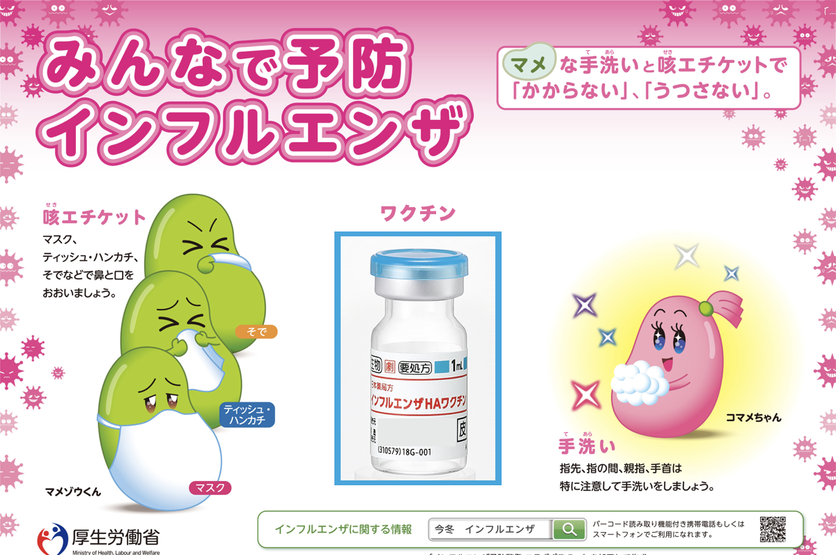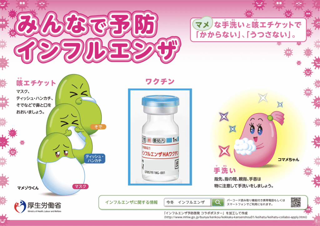 (写真は、厚労省の「インフルエンザ予防啓発コラボポスター」を規定内で改変したもの)