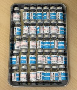 (写真は、昨日使ったインフルエンザワクチンの空バイアル36本)