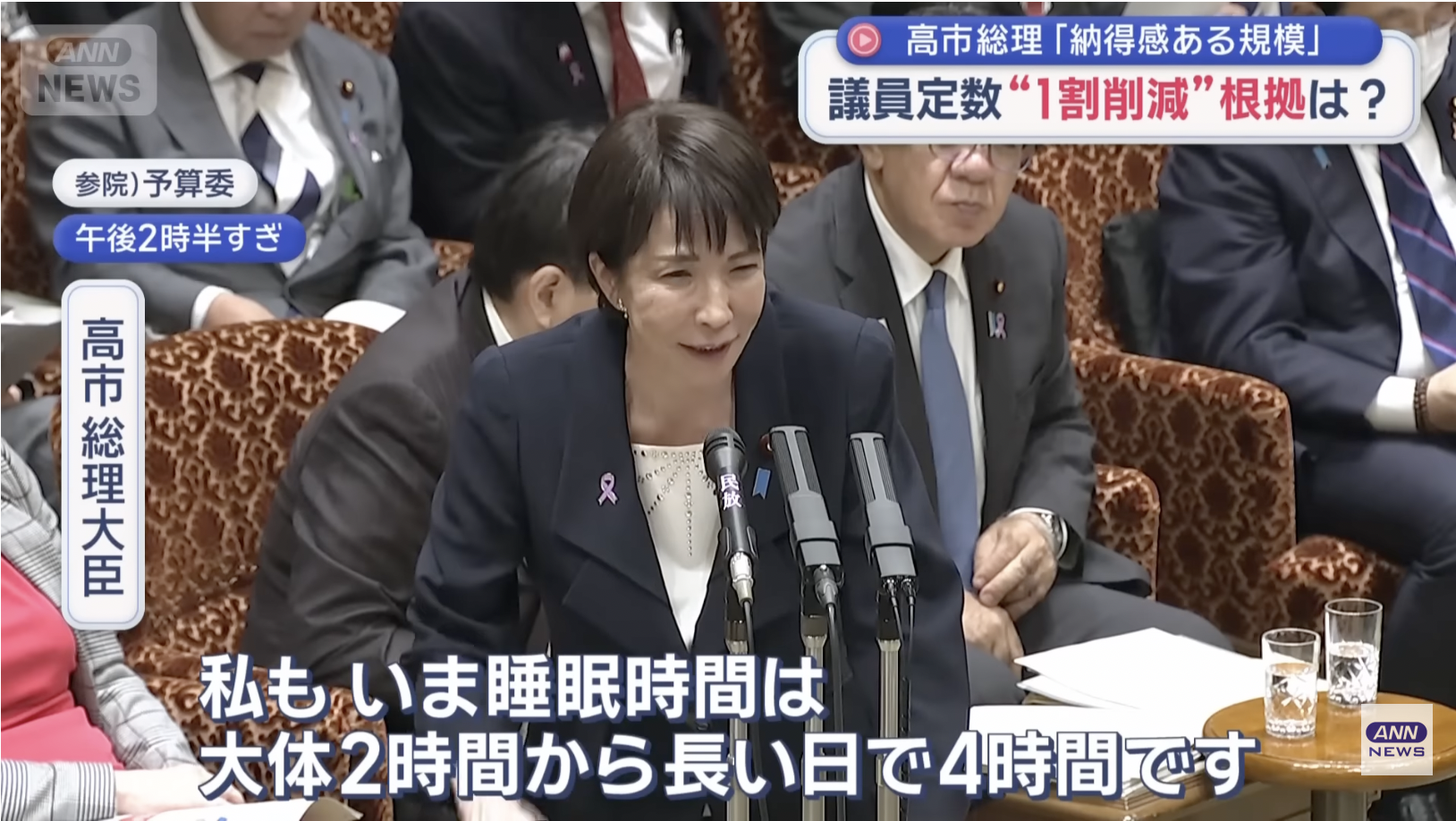 高市首相は、自分は2時間から4時間の睡眠時間しか取れてない(が頑張っている)と、自虐的に述べています。