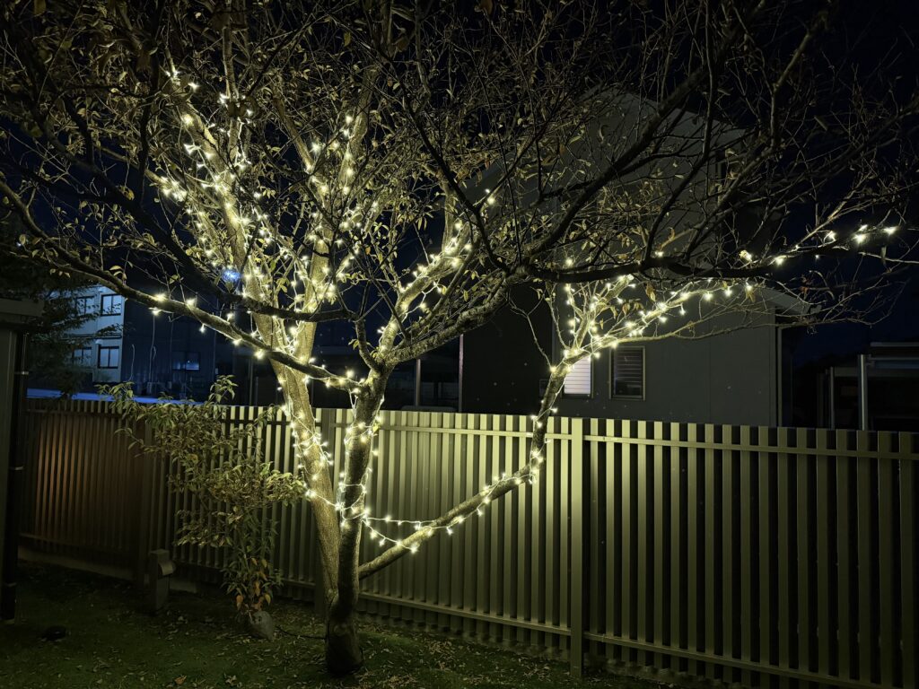 大きなシマトネリコの木に、苦労してLED電球を取り付けたこともありました。