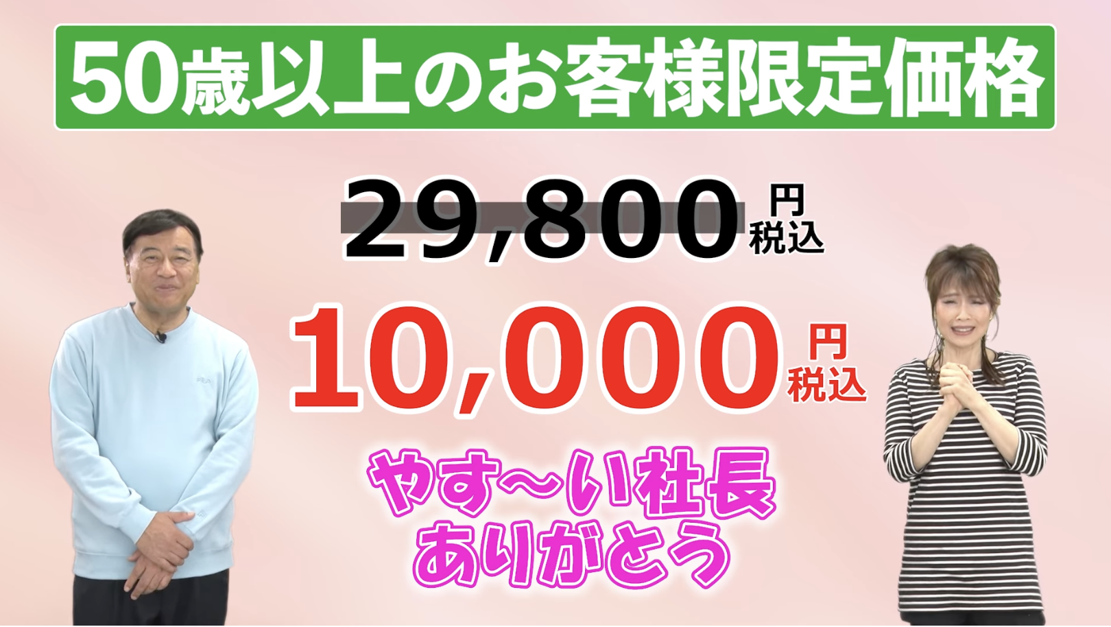 例によって社長は保科さんに懇願されて、50歳以上なら税込1万円にしま~すという、太っ腹ぶり。