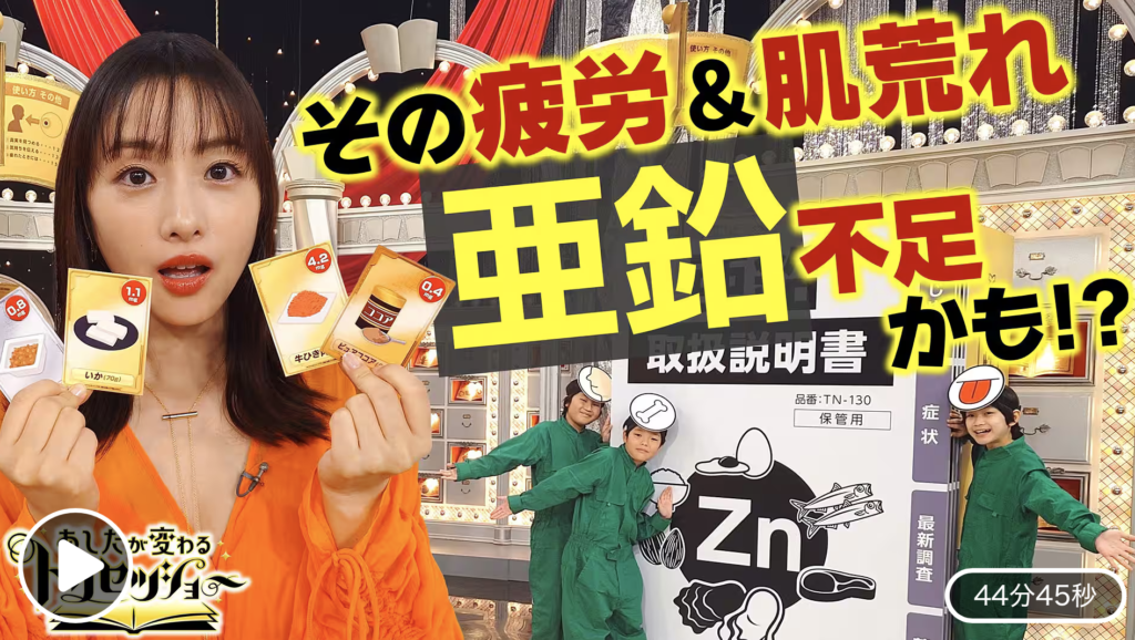 NHKの『あしたが変わるトリセツショー』の昨日の放送は「亜鉛のトリセツ」。