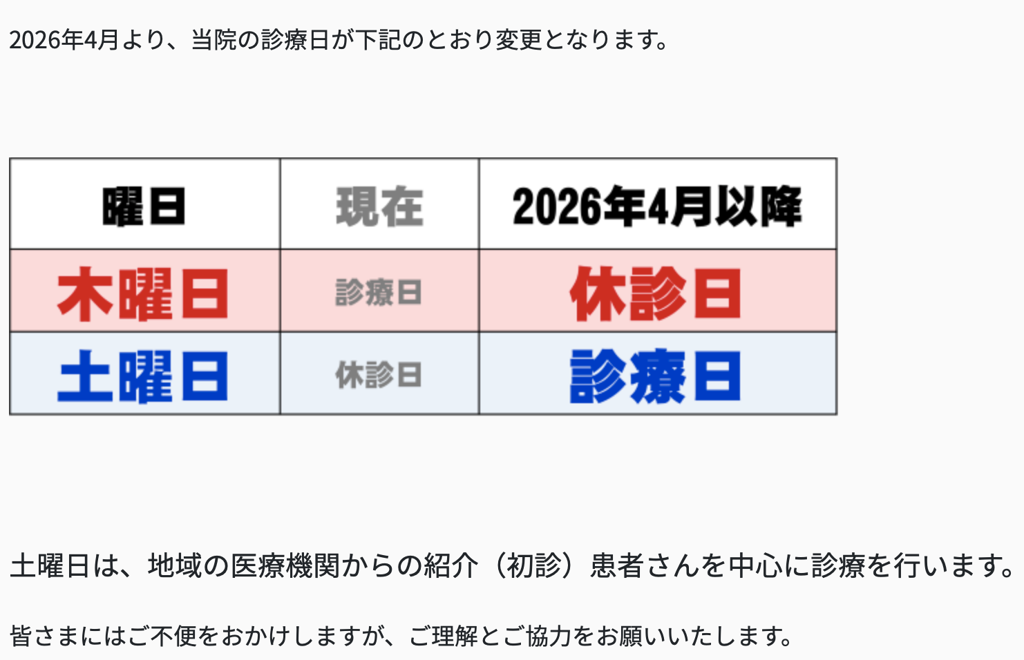 (写真は、宮崎大学病院のサイトより「診療日変更のお知らせ」)