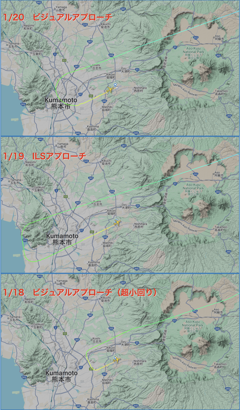 それから金峰山を左回りに回り込んでUターンし、ILSの電波に乗って空港に向かう「ILSアプローチ」です。