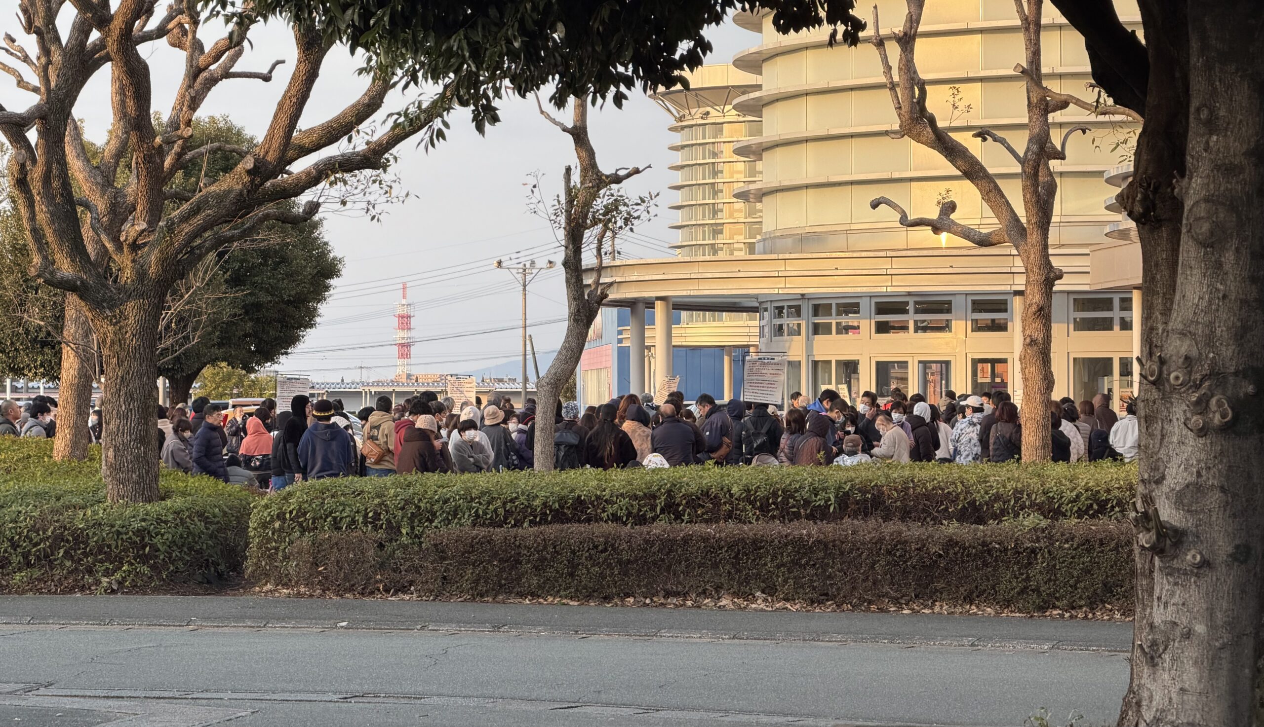 整列を促す係員の声が響きます。だいぶ向こうに「最後尾」のプラカードが見えます。