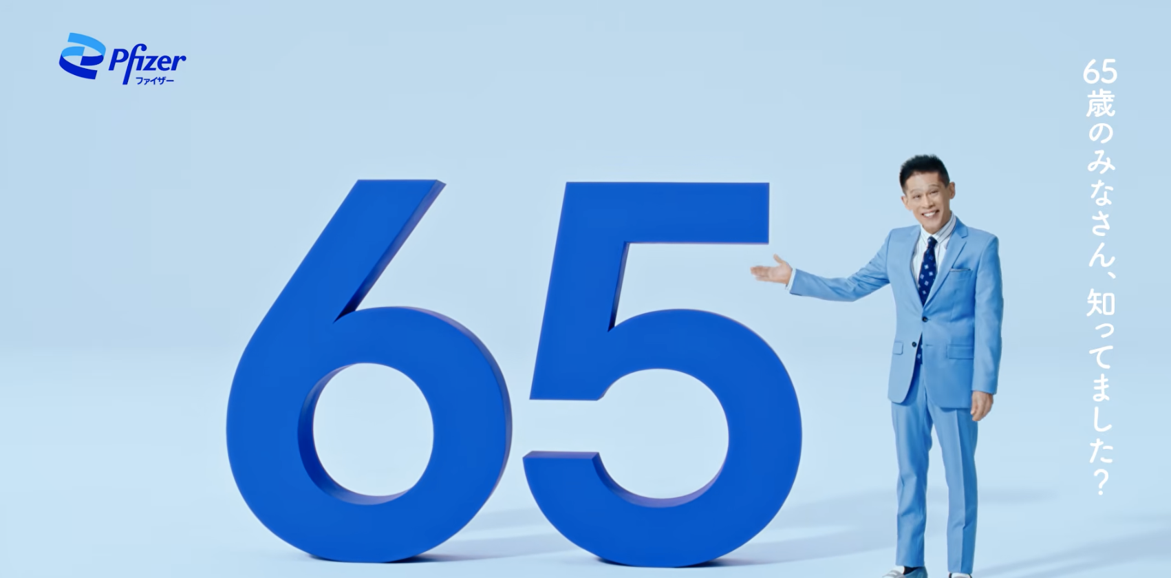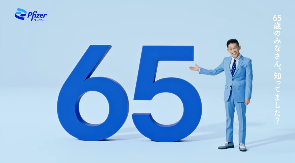 CMでは、ワクチンの接種対象は「65歳の時だけ」だと強調し、画面には大きく「65」の文字が出ています。