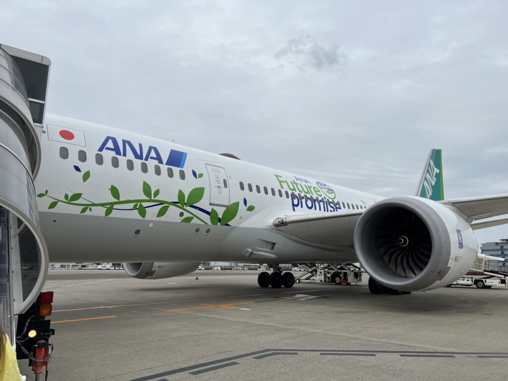 羽田空港はひどく混雑していましたが、今日はANAの「グリーンジェット」に搭乗できて、私は大満足です